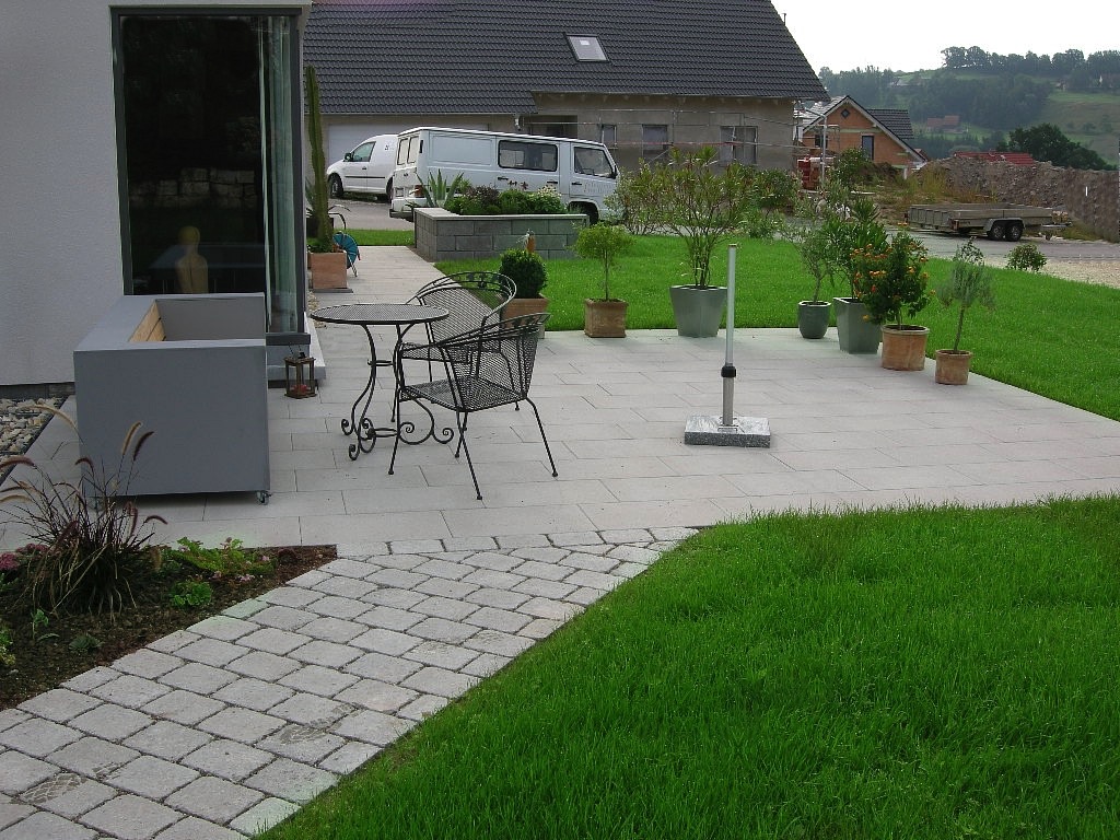 Die klassischen Materialien für unsere Pflasterbeläge / Plattenbeläge sind: